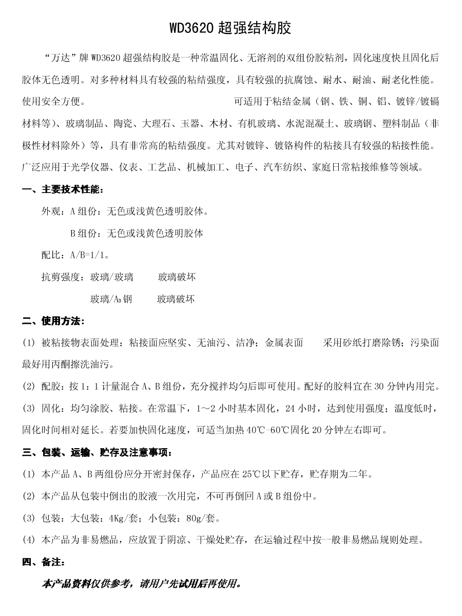 WD3620 全透明環氧樹脂結構膠