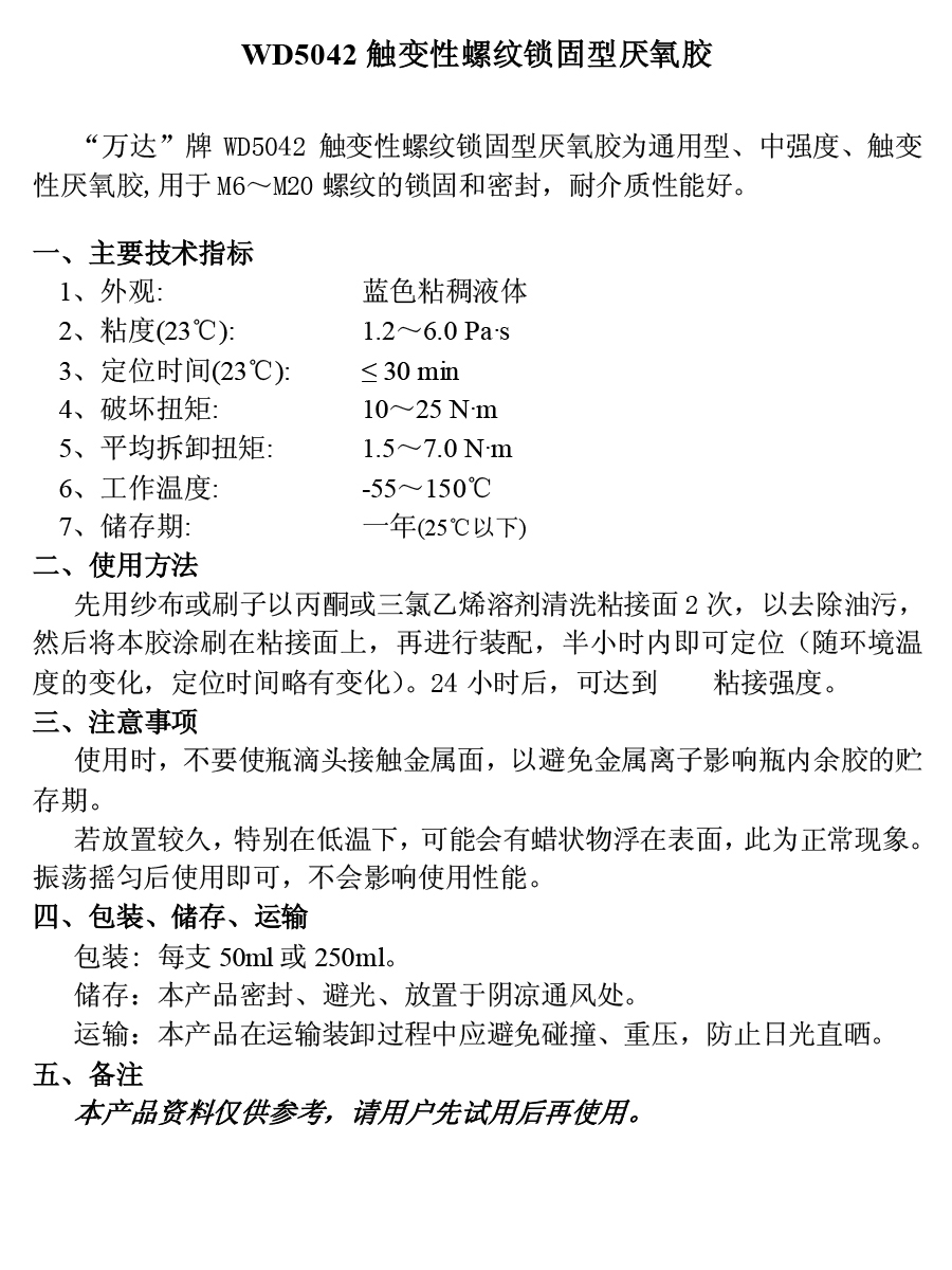 WD5042 中強度厭氧膠