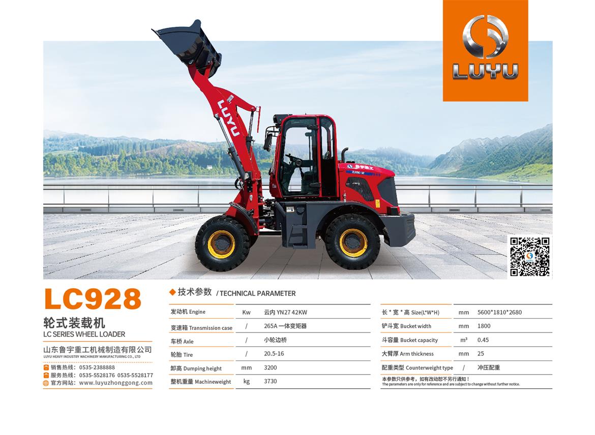 Lu Yu heavy loader series of products, are the best choice of the domestic and international best quality ?accessories, reliable quality, in line with the needs of human nature unique fuel nozzle guide set, oiling is simple, easy to centralized grease ?Fine pipe design, rationalization of the pipeline layout, beautiful and practical, easy to check and repair ?Bucket, automatic flat, reduce the fatigue of the driver, single pump shunt, with priority sensing steering system, energy saving ?Single lever control, reduce driving fatigue and improve work efficiency, four wheel clamp disc brake safety and reliability ?Design, small turning radius, load sensing coaxial flow amplification, light, flexible and efficient. ?Ideal operating speed and a 40 degree shift angle significantly improve work efficiency ?International standard noise reduction technology, to protect the driver's physical and mental health, to ensure that the work efficiency ?Industry leading cooling system to ensure continuous operation at high temperature.